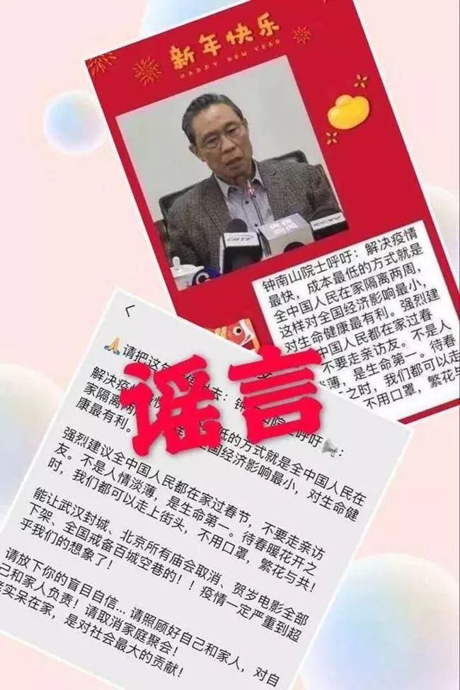 謠言一:鐘南山院士建議“全中國人民在家隔離兩周”