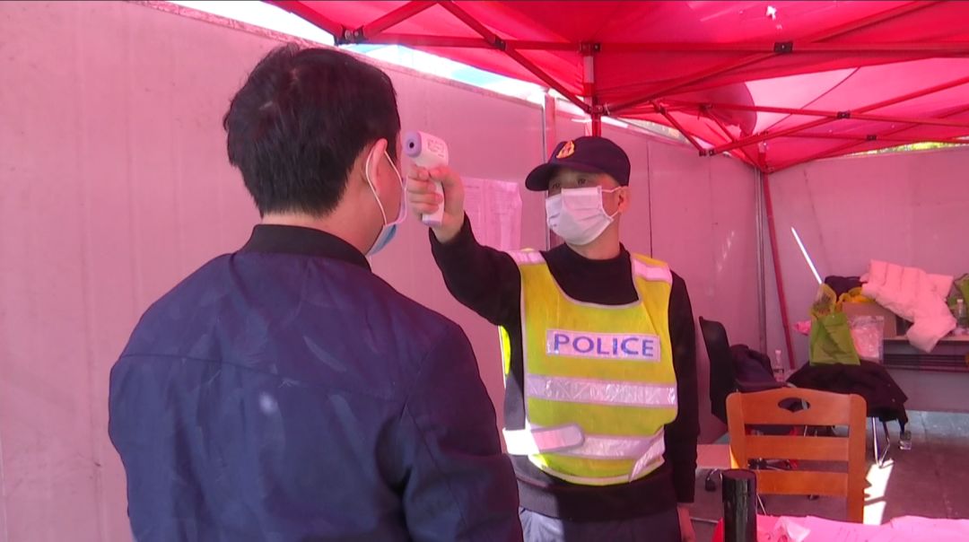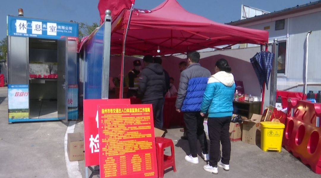 交通防疫檢測點工作人員 復檢是因為現(xiàn)在太陽溫度高,車內(nèi)沒開空調(diào)比較熱,體溫會比較高一點,過來這里休息一下,出來走一下,我們再檢測,沒問題就可以放行,如果有事,就要在隔離亭里休息,拿溫度計來計量。