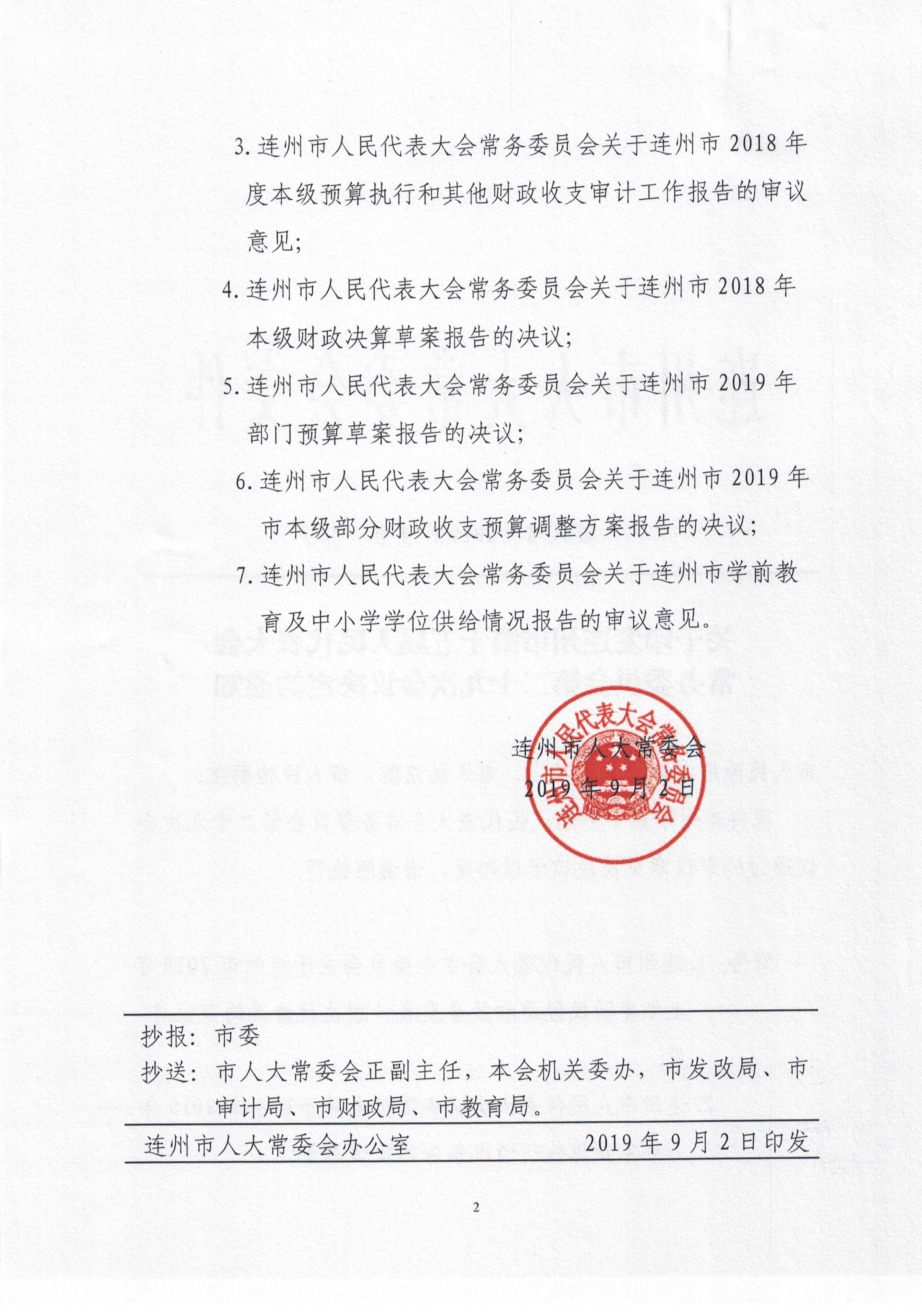 連州市2018年本級財政決算草案決議
