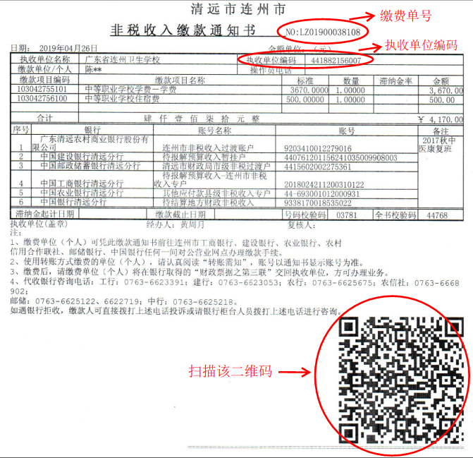 方法一:如需繳費憑證的學生,憑學校開具的非稅繳費單到清遠市縣各銀行繳納(英德除外),繳款成功后留存銀行繳款憑證。