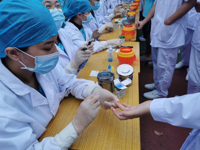 活動(dòng)中,各專業(yè)學(xué)生進(jìn)行了專業(yè)技能展示,以扎實(shí)的功底和嫻熟的操作技能,展示自己所學(xué)成果。其中,護(hù)理和助產(chǎn)專業(yè)展示了輪椅轉(zhuǎn)運(yùn)、外科包扎,醫(yī)學(xué)檢驗(yàn)技術(shù)專業(yè)展示了ABO血型鑒定,農(nóng)村醫(yī)學(xué)和中藥專業(yè)展示了無菌手術(shù)穿脫和中藥調(diào)劑,中醫(yī)康復(fù)和中醫(yī)美容進(jìn)行了拔火罐、推拿和面部護(hù)理技能展示,口腔專業(yè)進(jìn)行了全口義齒排牙的技能展示。