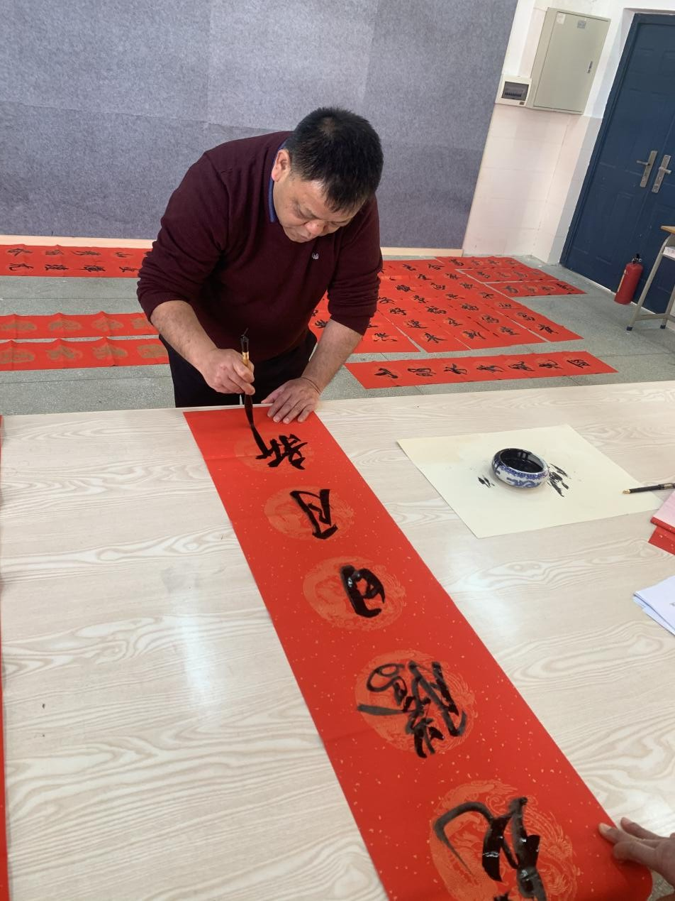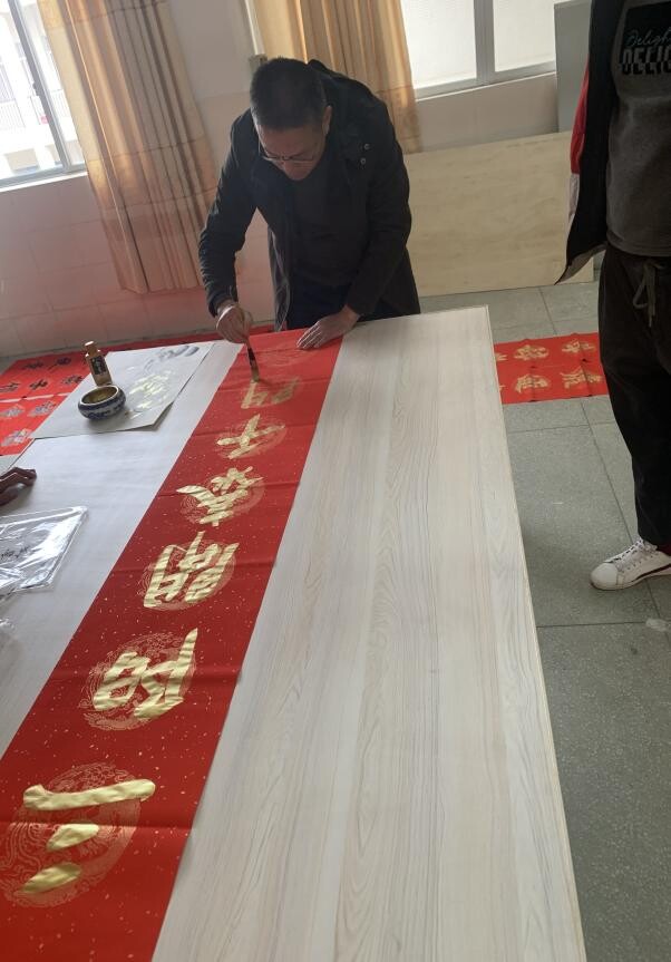 “門迎百福福星照,戶納千祥祥氣開”,老師們個個喜笑顏開,氣氛十分熱烈。三位老師把漢字的美態(tài)表現得淋漓盡致,將濃濃的新春祝福凝聚在筆尖,為新的一年帶來了別樣的溫暖。老師們有的駐足屏息觀賞、仔細體味,有的精心挑選著自己喜歡的福字和對聯,還有的幫助老師們鋪紙研墨,助添書寫春聯的激情。一副副平安和諧、吉祥如意的春聯,帶著揮別牛年、喜迎虎年,辭舊迎新的美好祝愿,一個個“?!弊?,寄托著喜慶團圓的美好愿望和暖暖的祝福,為即將來臨的新春佳節(jié),增添了濃濃的喜慶氣氛。一副副飽含著濃濃年味、滿載著新春祝福的春聯寫出了我們每一個人對于來年美好生活的向往和祈盼,同時寓意著我校2022年各項事業(yè)紅紅火火,繁榮昌盛。