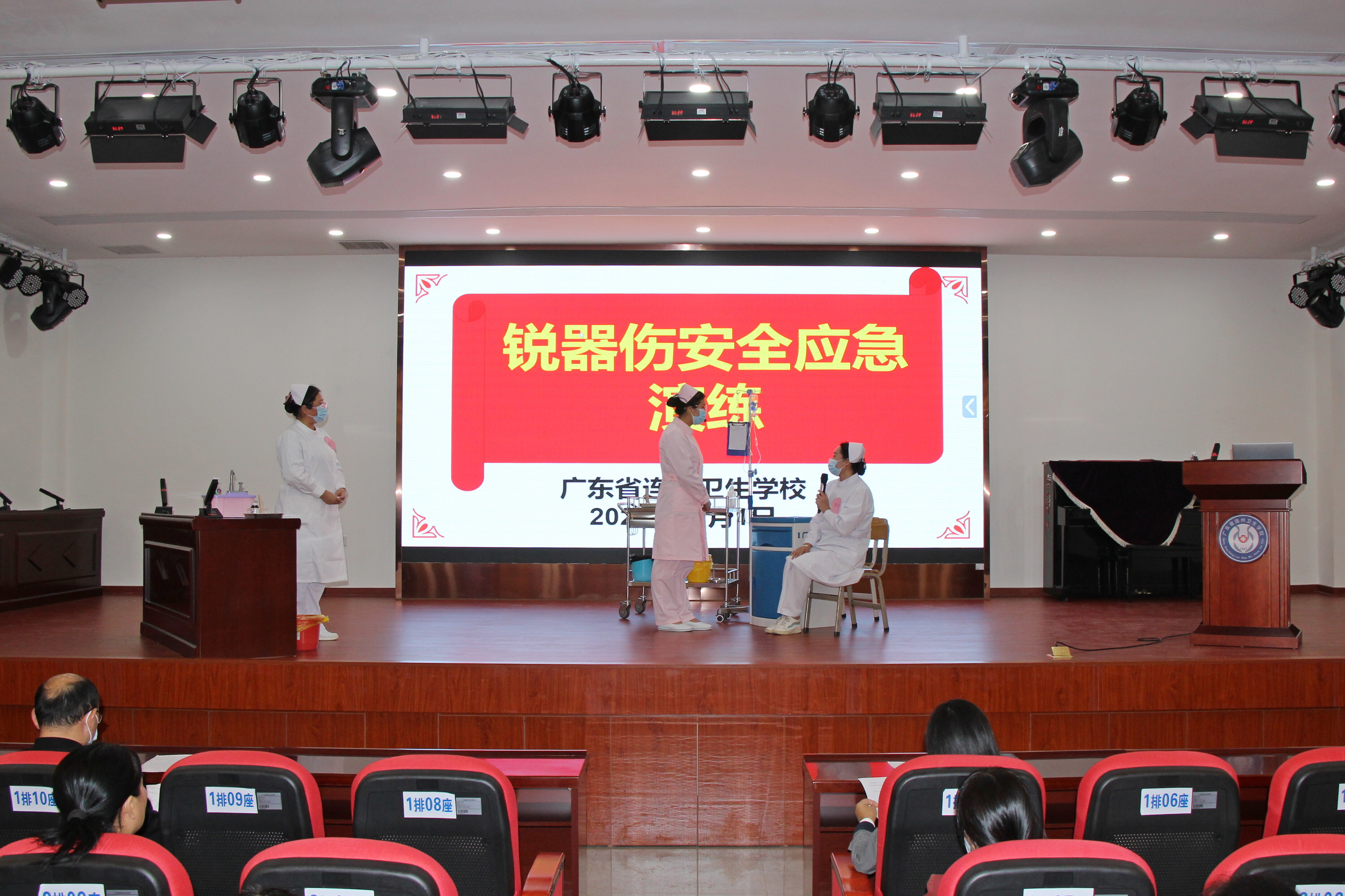為進(jìn)一步加強(qiáng)實(shí)驗(yàn)室安全使用管理,做好醫(yī)學(xué)生在實(shí)操訓(xùn)練過程中防范銳器傷及被銳器傷后的應(yīng)急處置,廣東省連州衛(wèi)生學(xué)校于近日下午在學(xué)校4棟學(xué)術(shù)報(bào)告廳舉行了銳器傷應(yīng)急演練。