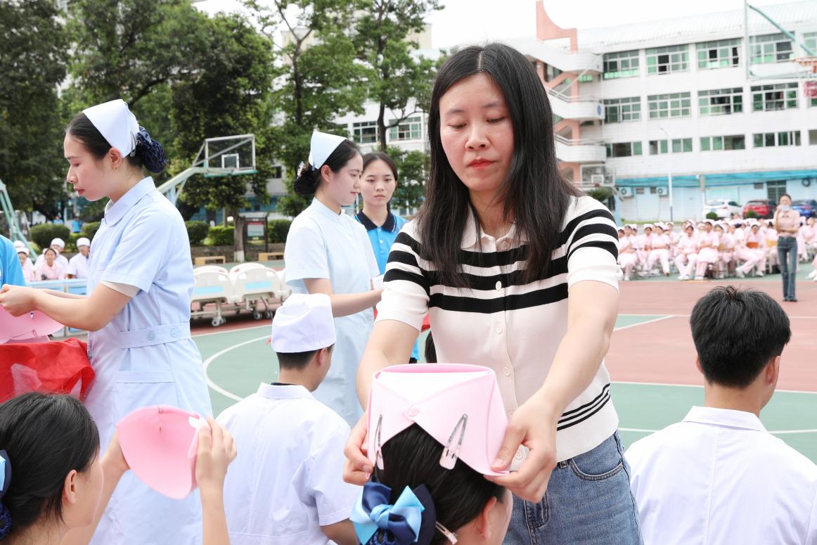 隨后,活動進行了新護生授帽、宣誓儀式。護理及智慧健康養(yǎng)老專業(yè)學(xué)生代表身著護士服,接受教師為她們戴上象征責(zé)任與奉獻的燕尾帽。錚錚誓言響徹會場,“勿為有損之事,勿取服或故用有害之藥。盡力提高護理之標(biāo)準(zhǔn),慎守病人家務(wù)及秘密?!?/span>這是護理人傳承精神、接續(xù)使命的重要時刻,激勵著學(xué)校全體師生傳承光榮傳統(tǒng)、勇?lián)】凳姑?/span>