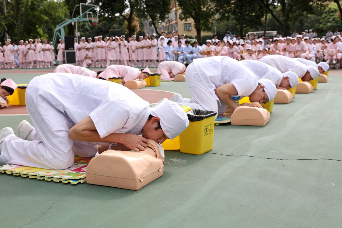 “患者意識喪失,立即實施心肺復(fù)蘇!”在心肺復(fù)蘇技能展示環(huán)節(jié),學(xué)生通過模擬急救場景,展現(xiàn)扎實的專業(yè)功底。在靜脈輸液技能展示環(huán)節(jié),學(xué)生嚴(yán)格遵循無菌操作原則,每一個步驟都有條不紊、規(guī)范精準(zhǔn)。學(xué)生們還進行了風(fēng)采展示,獲得陣陣掌聲。從精準(zhǔn)的靜脈穿刺到規(guī)范的無菌操作,從人文關(guān)懷溝通到團隊協(xié)作處置,每一個細節(jié)都彰顯出護理事業(yè)的嚴(yán)謹(jǐn)與溫度。
