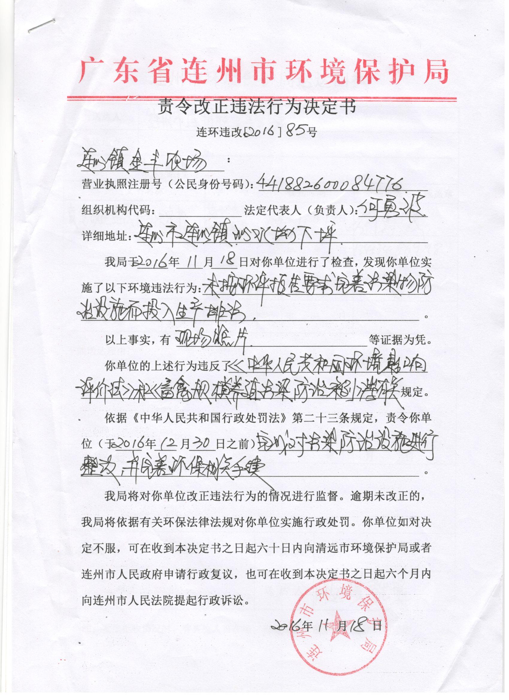 連環(huán)違改字[2016]85號(hào)