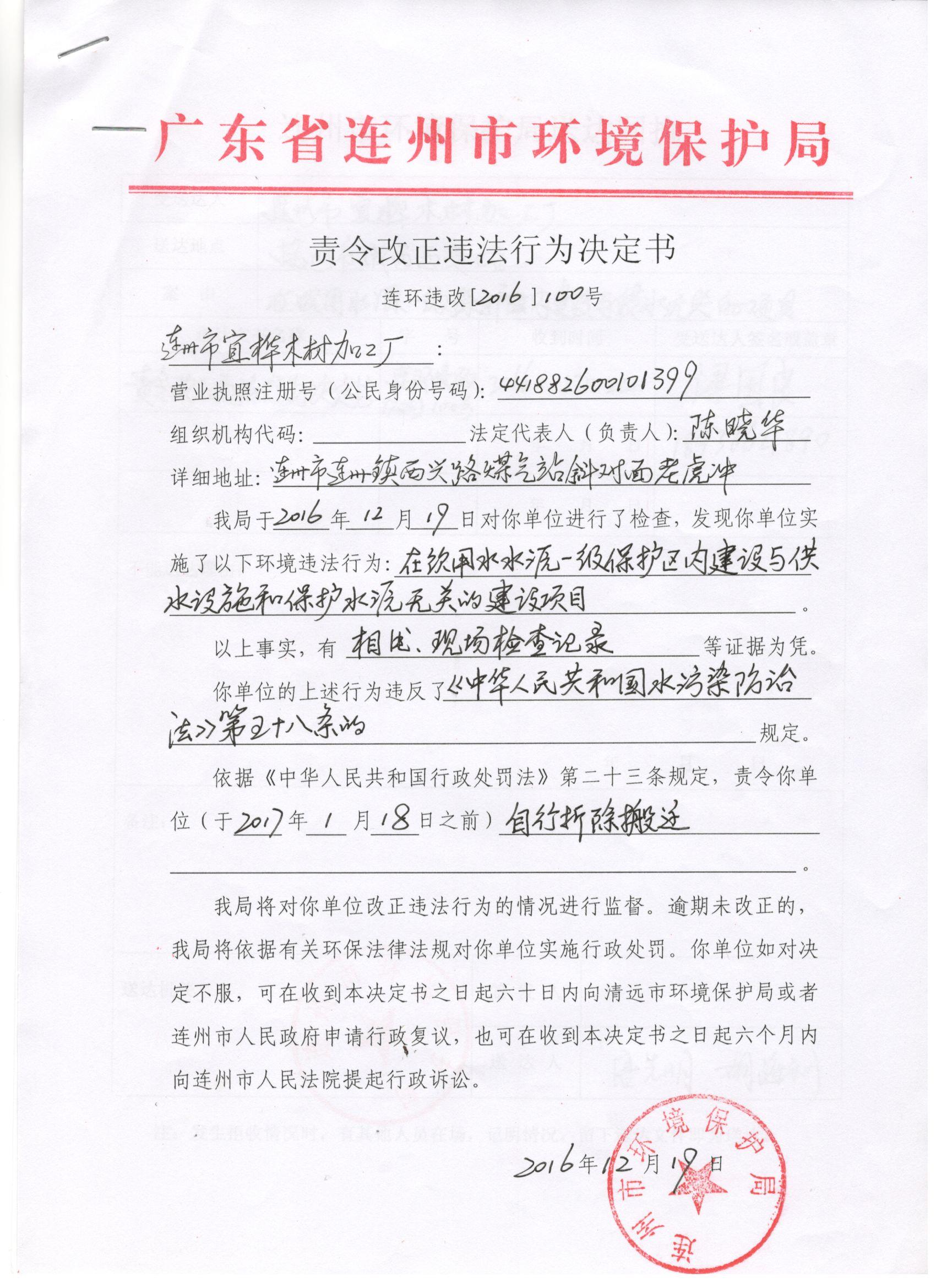 連環(huán)違改字[2016]100號