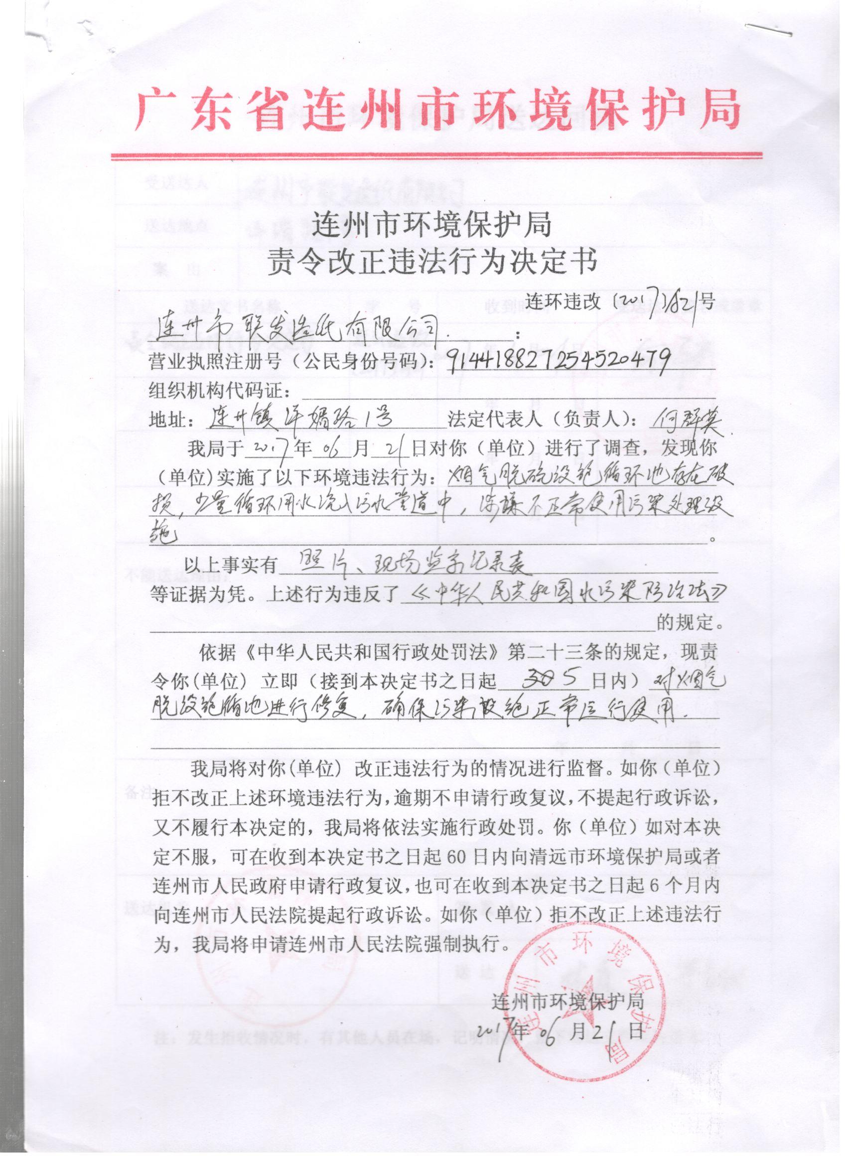 來源:連州市環(huán)境保護(hù)局 發(fā)布時(shí)間:2017-06-21 16:49:00 字體大小: 瀏覽次數(shù):-