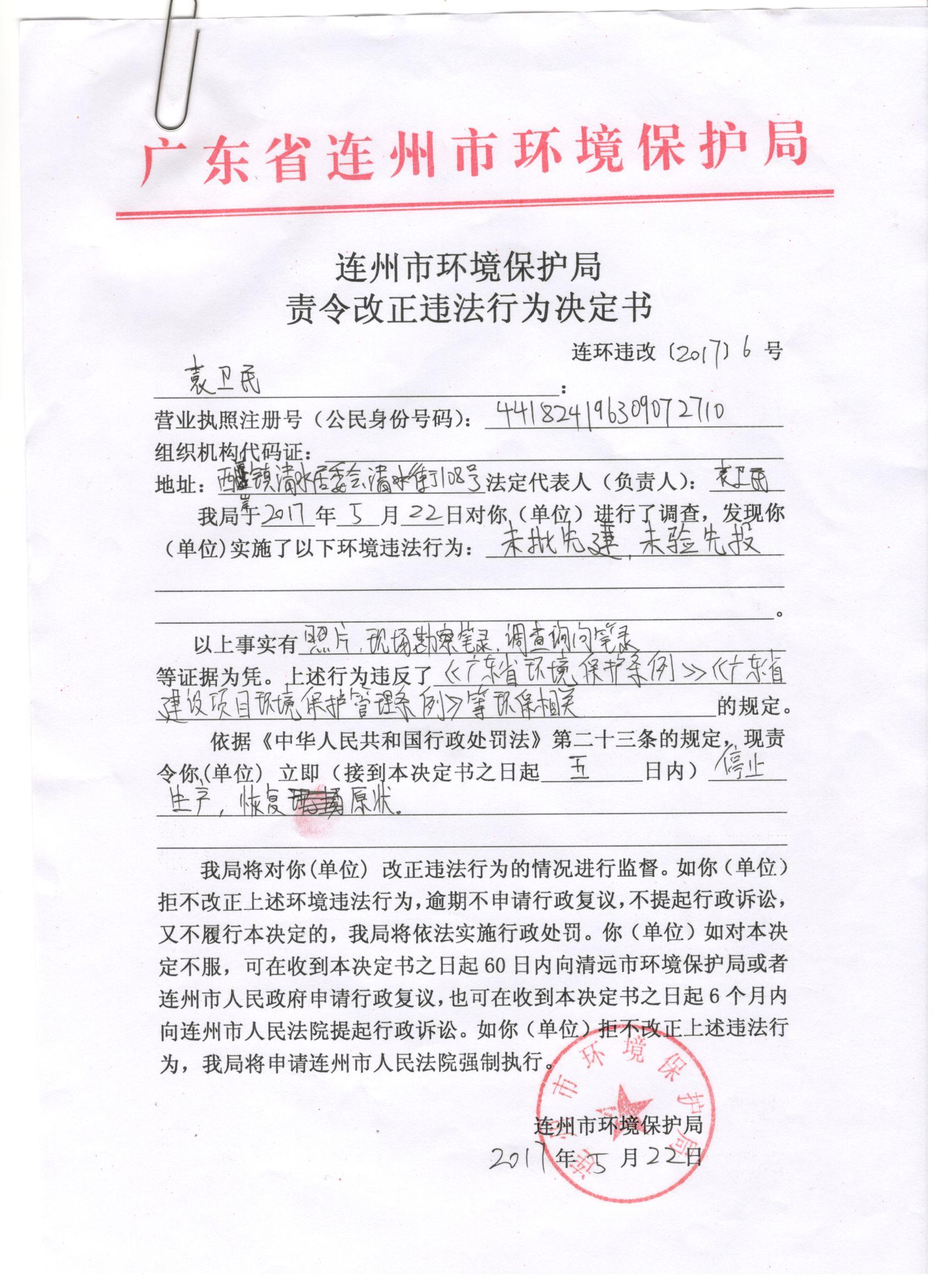 連環(huán)違改字[2017]06號(hào)