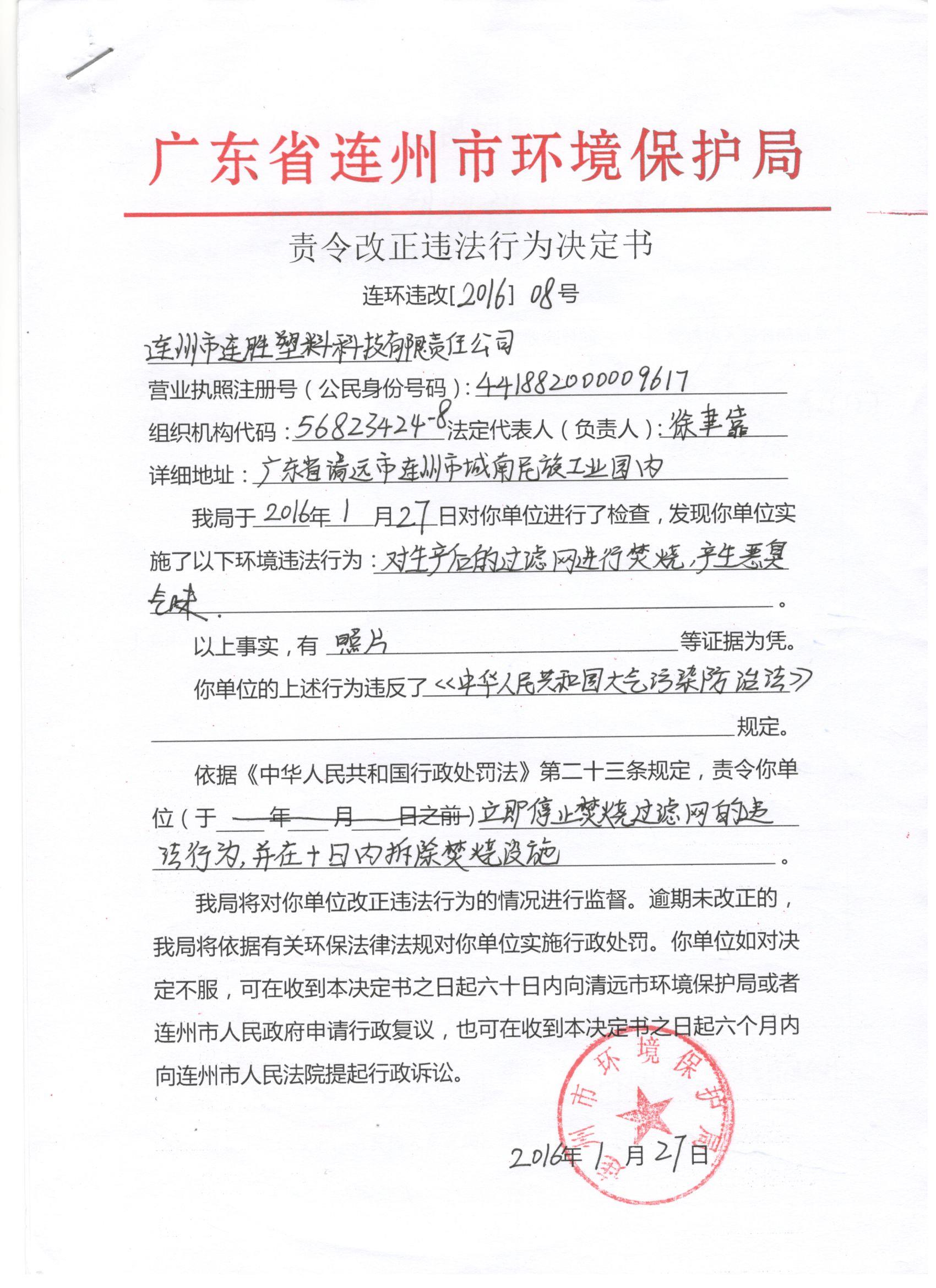 連環(huán)違改【2016】08號