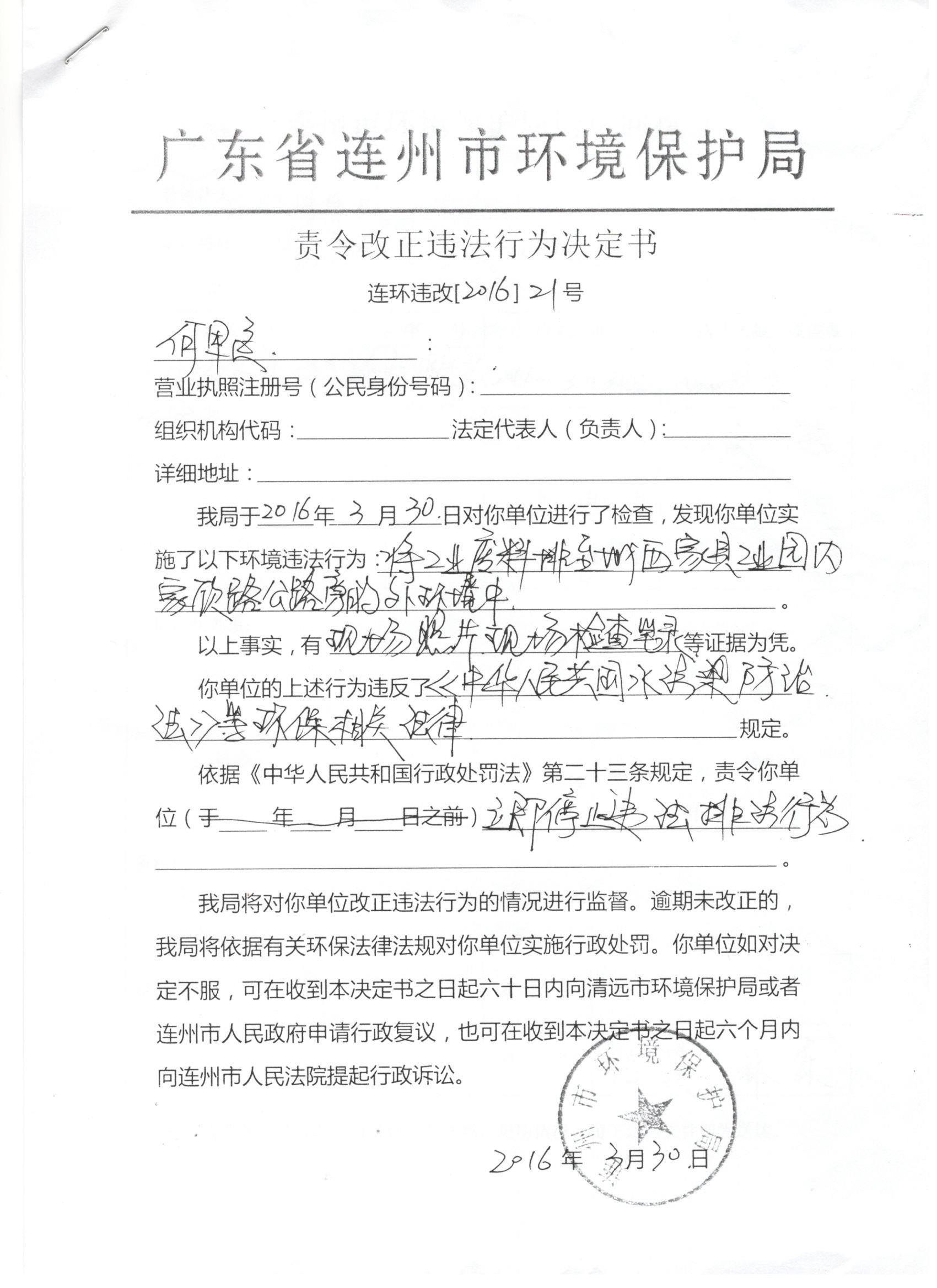 連環(huán)違改【2016】21號(hào)