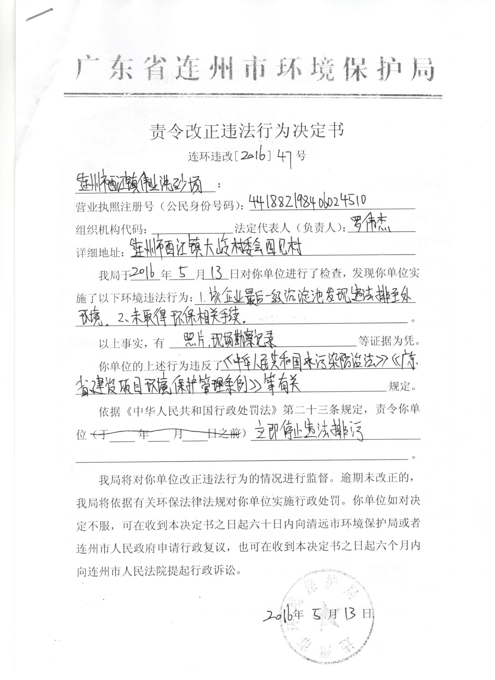連環(huán)違改【2016】47號