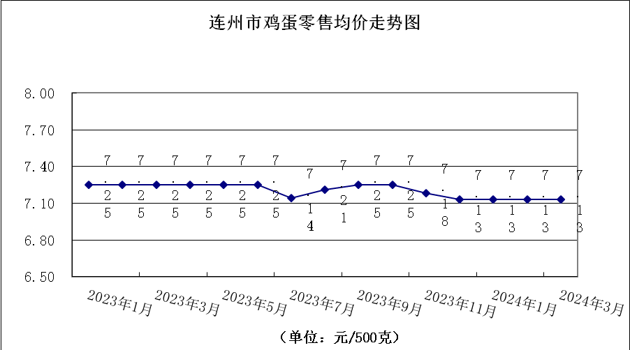蛋類零售均價7.90/500克,環(huán)比降0.50%。其中,雞蛋平均零售價格為7.13/500克,環(huán)比不變。鴨蛋平均零售價格為8.68/500克,環(huán)比降0.80%。