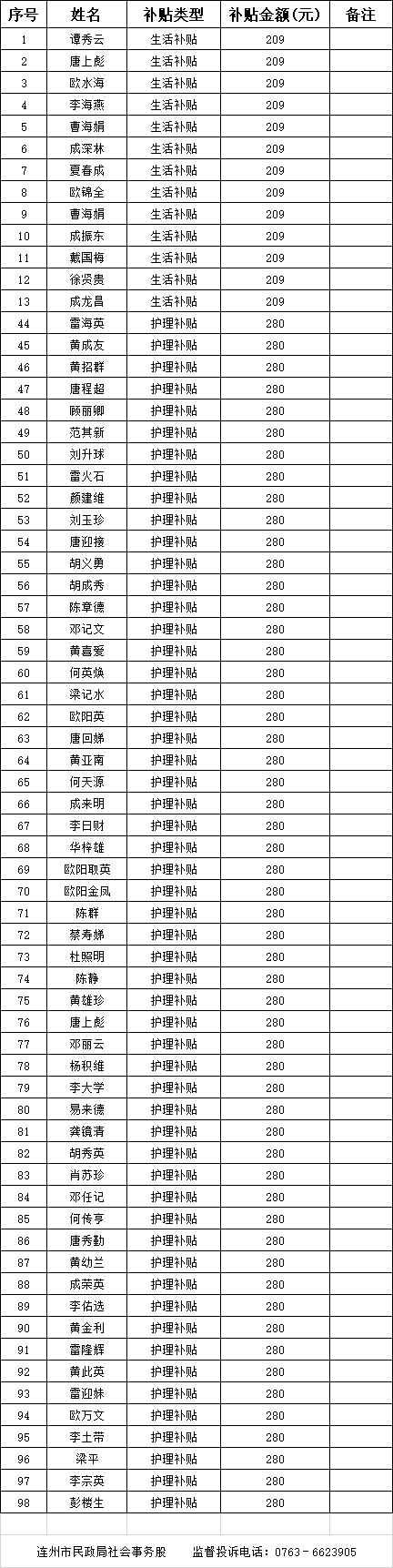 連州市2025年7月新增殘疾人兩項(xiàng)補(bǔ)貼名單