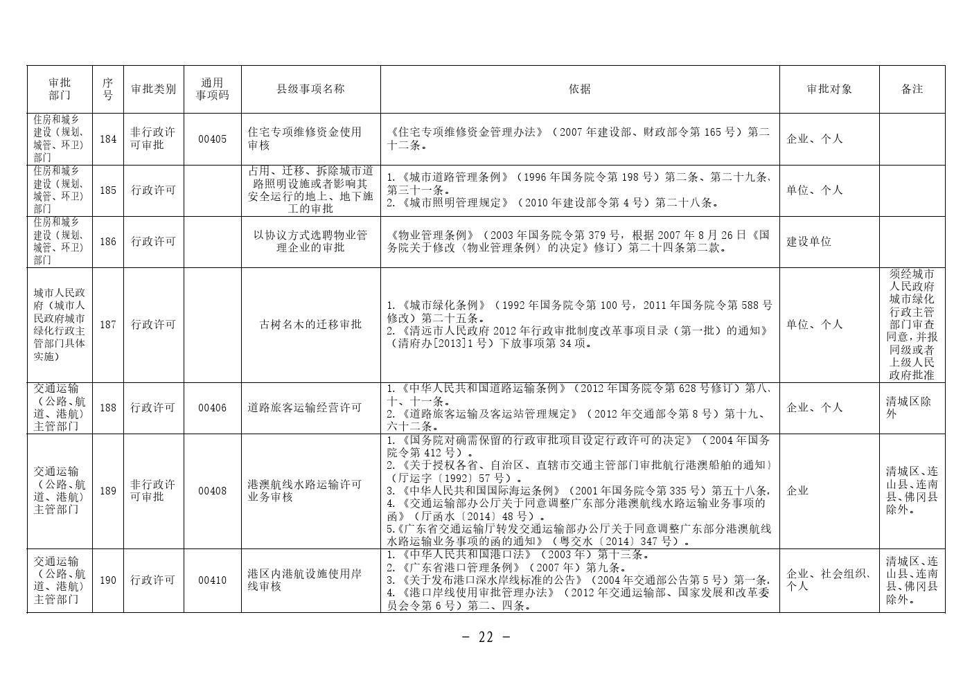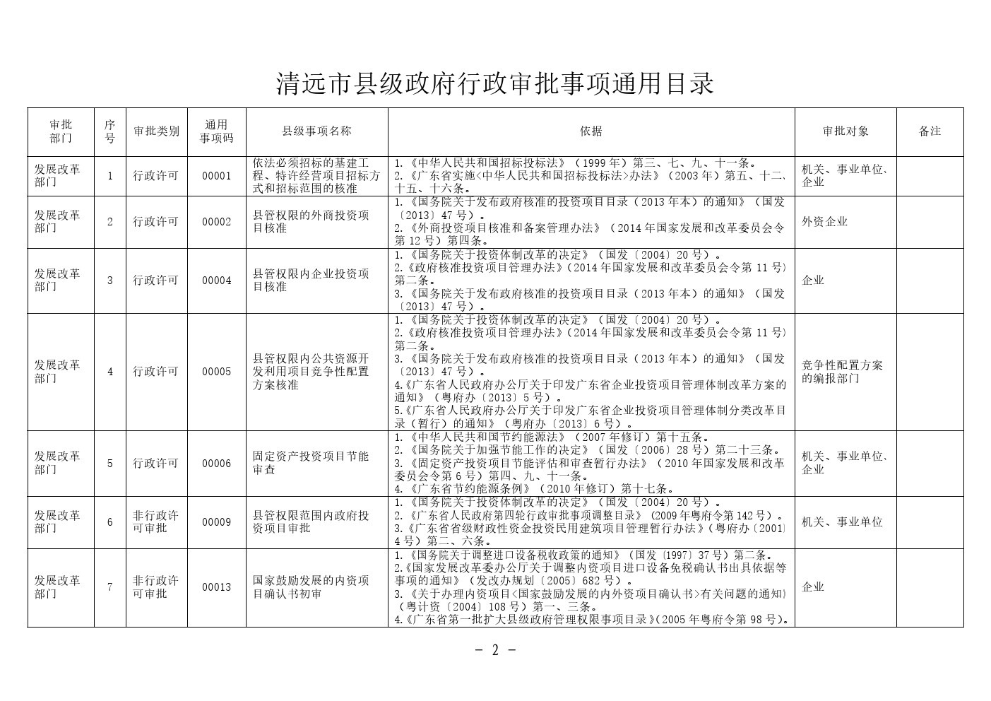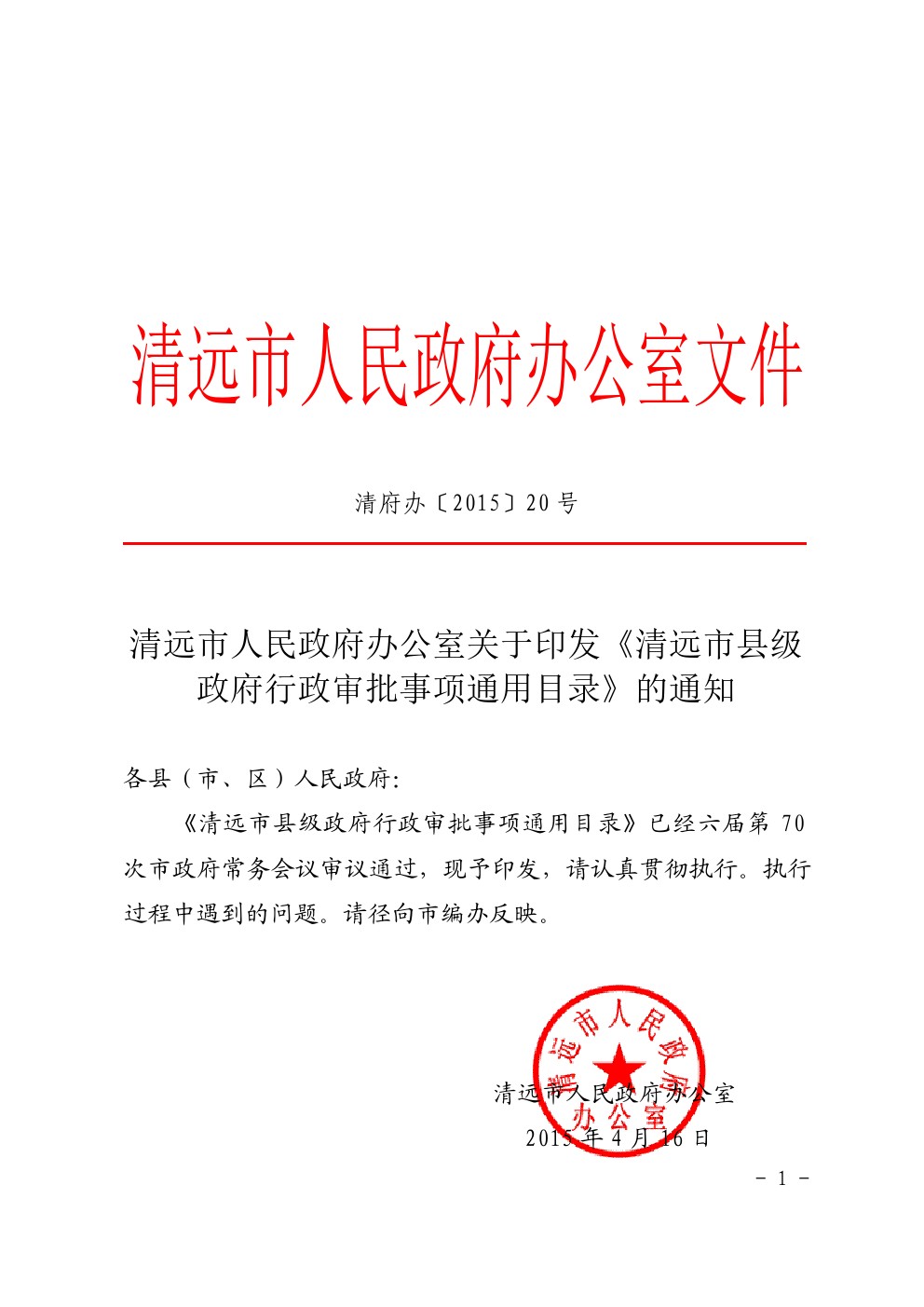 清遠(yuǎn)市人民政府辦公室關(guān)于印發(fā)《清遠(yuǎn)市縣級政府行政審批事項(xiàng)通用目錄》的通知(清府辦[2015]20號)