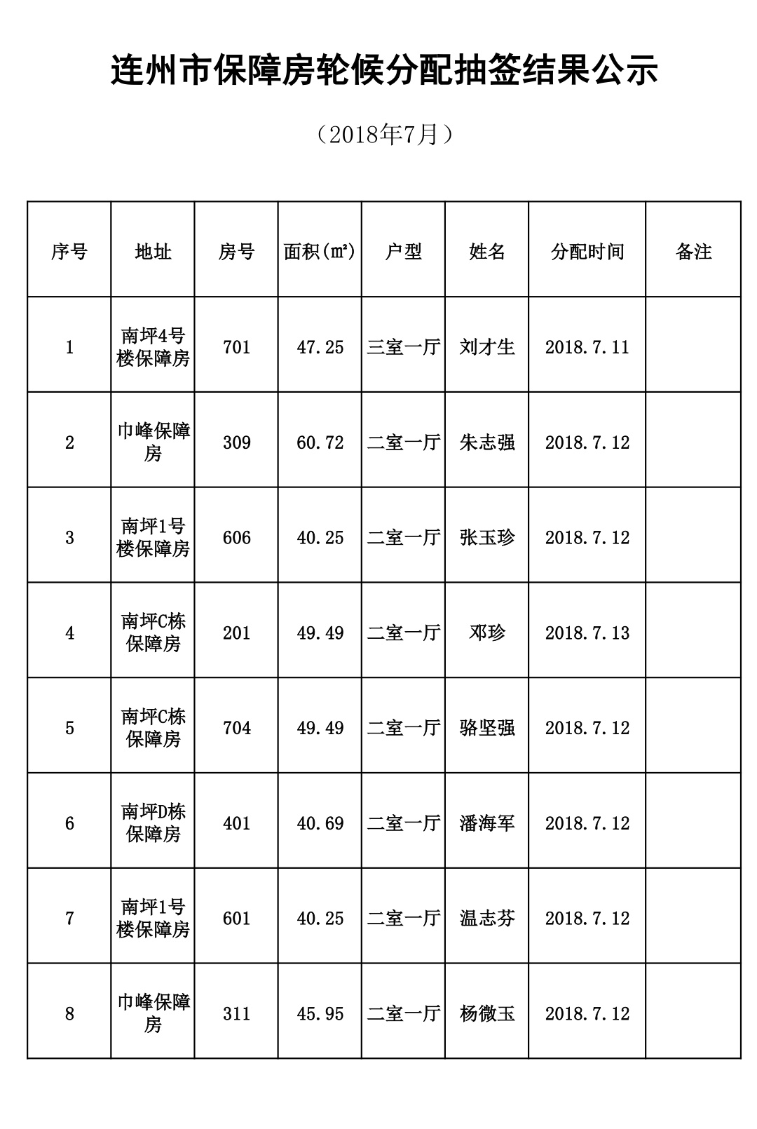 連州市保障房輪候分配抽簽結(jié)果公示(7月)