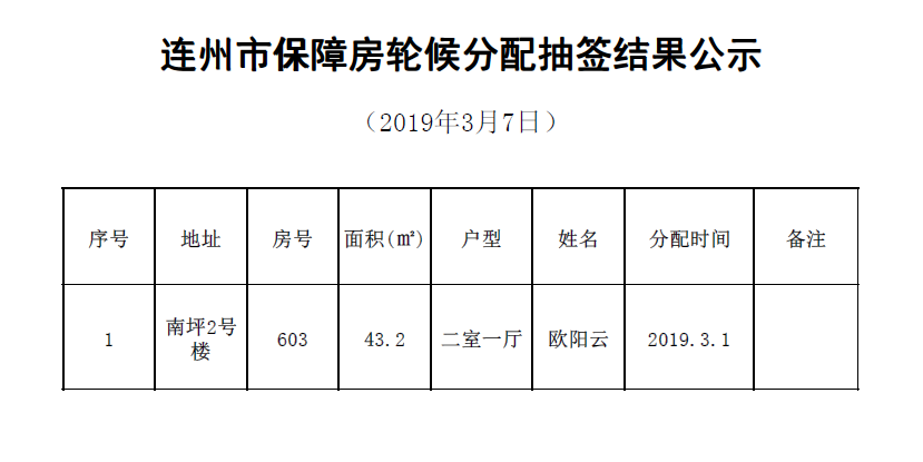 連州市保障房輪候分配格抽簽結(jié)果公示(3月)
