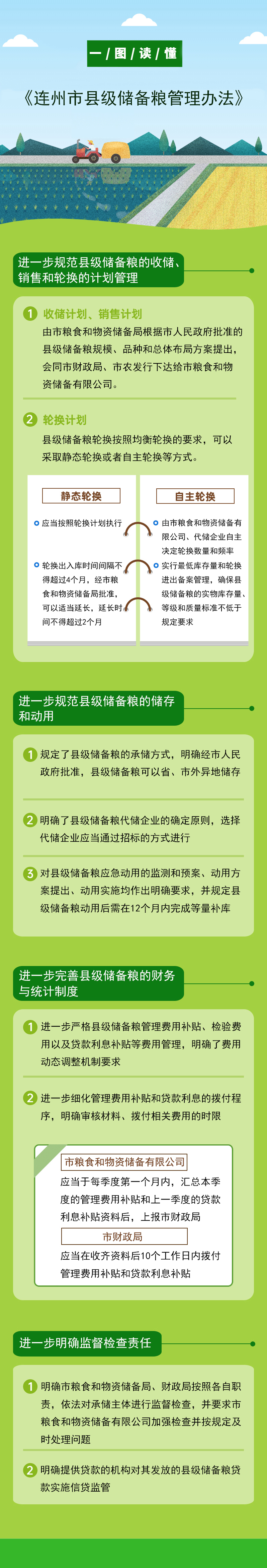 為加強連州市縣級儲備糧管理,確保數(shù)量真實、質(zhì)量良好、儲存安全、管理規(guī)范、運轉(zhuǎn)高效,有效發(fā)揮縣級儲備糧保障糧食安全的作用,連州市發(fā)展和改革局牽頭組織擬定了《連州市縣級儲備糧管理辦法》(以下簡稱《辦法》),現(xiàn)對相關(guān)內(nèi)容解讀如下:
