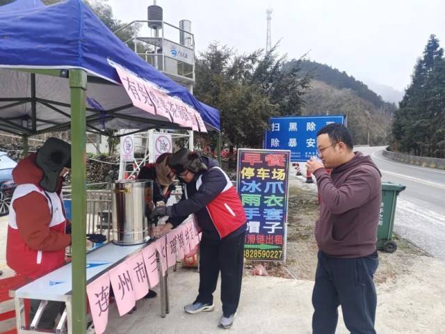 志愿者為過往路人派發(fā)姜茶。 三水瑤族鄉(xiāng)供圖