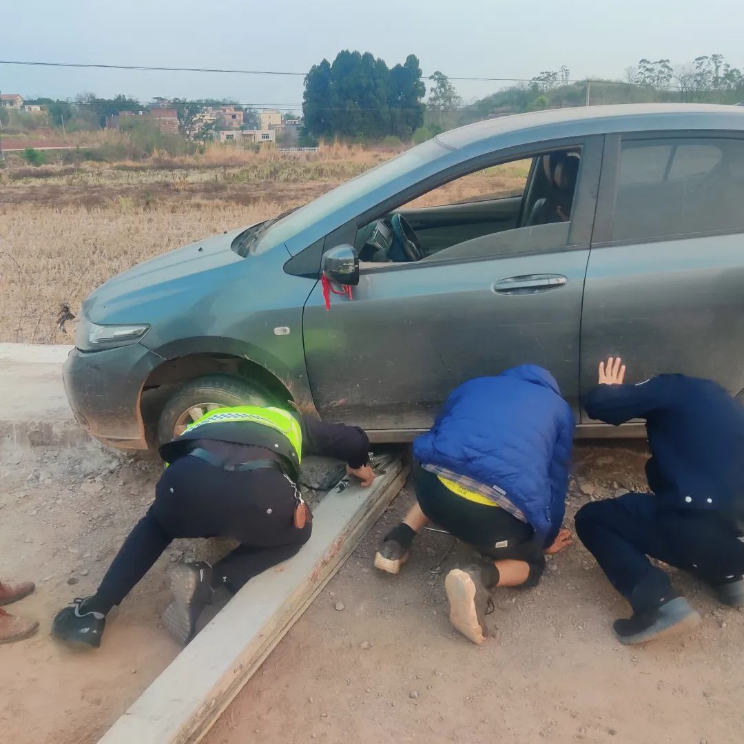 近日,星子派出所民輔警在執(zhí)勤途中,路遇群眾車輛發(fā)生事故的求助,經(jīng)了解,該名群眾的車子底盤卡在被掉落的路基上,無法動(dòng)彈。見此情況,該所民輔警及時(shí)上前救助,找來一根橫木墊在車輪后方,協(xié)助群眾將車倒回路面,汽車“脫困”可以正常行駛。
