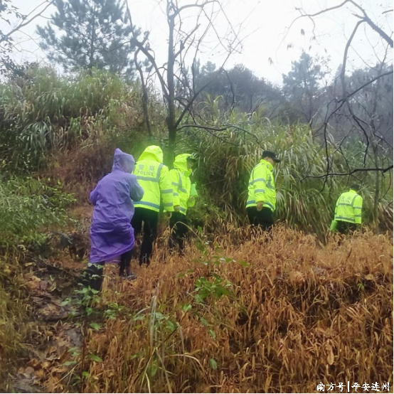 由于當(dāng)時(shí)天空已經(jīng)開(kāi)始下起了蒙蒙細(xì)雨,加上老人走失地點(diǎn)地形復(fù)雜、山路崎嶇,能見(jiàn)度極低,給搜救工作帶來(lái)了極大的困難。雖然山路地濕路滑,但搜救人員不敢有絲毫懈怠,他們?cè)谧呤Ю先丝赡芡窘?jīng)的道路上,不停呼喊老人姓名,進(jìn)行地毯式搜索直至深夜,因?yàn)橐归g可視范圍小,一直沒(méi)有發(fā)現(xiàn)老人的蹤跡。考慮到天氣寒冷再加上老人體弱,九陂派出所第一時(shí)間向指揮中心請(qǐng)求支援,增派警力進(jìn)一步擴(kuò)大搜救范圍。