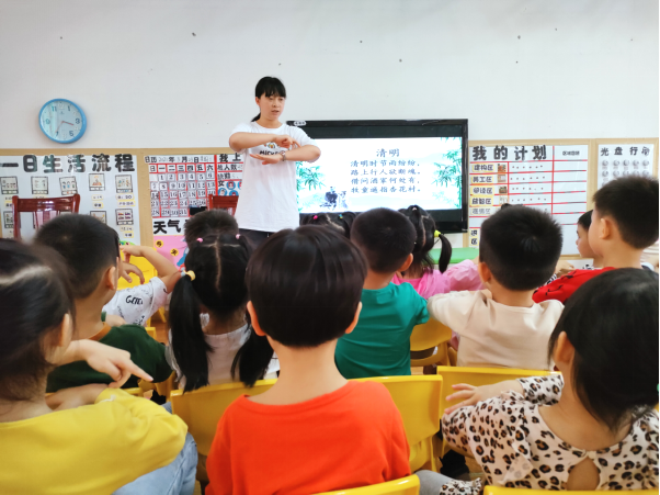 每個(gè)班組織開(kāi)展一節(jié)主題班會(huì),并用詩(shī)歌朗誦、繪畫(huà)、手工的形式融入到幼兒的日常教學(xué)活動(dòng)中,通過(guò)清明節(jié)的主題教育,讓幼兒了解清明節(jié)是中國(guó)的一個(gè)傳統(tǒng)節(jié)日,了解清明節(jié)的一些習(xí)俗,清明節(jié)的歷史由來(lái),緬懷先烈,知道自己現(xiàn)在的幸福生活是來(lái)之不易的。