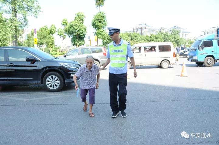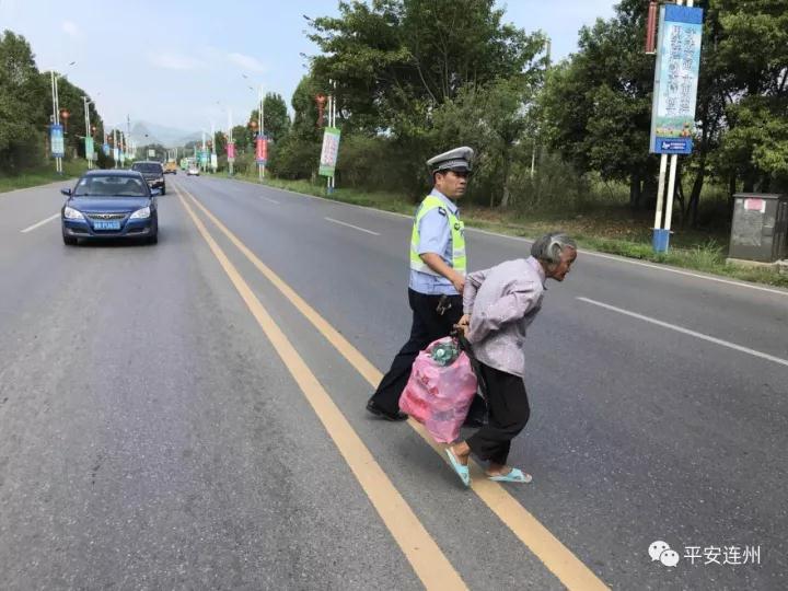 4老人家蹣跚步行過(guò)馬路,險(xiǎn)象環(huán)生,執(zhí)勤交警熱情相助,小心翼翼地扶老人家安全過(guò)馬路。