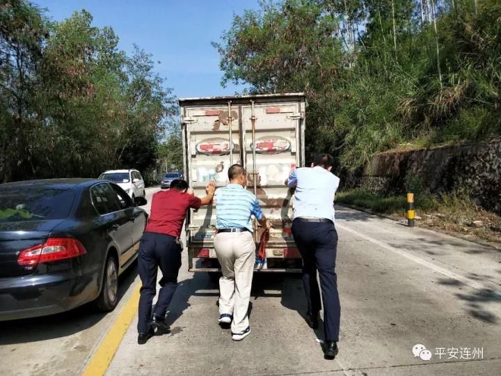 6四方井路段,小貨車(chē)與前方的車(chē)輛發(fā)生追尾事故,在路中間拋錨。途徑此處的交警為了疏導(dǎo)交通,幫助司機(jī)把車(chē)推至路邊,等候處理。