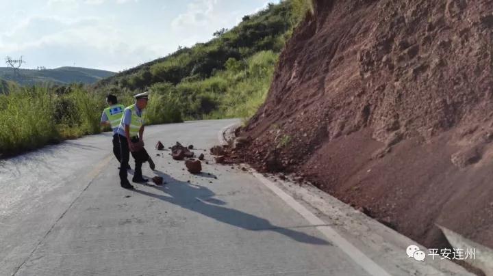 2星子中隊(duì)加強(qiáng)假日期間的路面巡邏管控,執(zhí)勤交警發(fā)現(xiàn)公路邊坡塌方落石,立即徒手清理公路上的落石,及時(shí)消除事故隱患